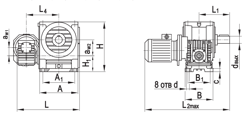Типоразмер аW1 аW2 А А1 В В1 L* L1* L2max L3* L3 Н Н1 сd d вх dвых