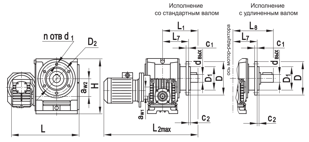 Типоразмер аW1 аW2 D D1 D2 H L* L1 L2max L3* L7 L8*с 1 с2 d1 dвх dвых n