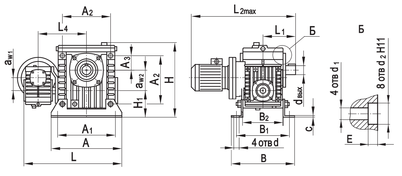 Типоразмер аW1 аW2 А А1 А2 А3 В В1 В2 L* L1* L2max L3* L4 Н Н1 с  d d 1 d2 Е dвх dвых