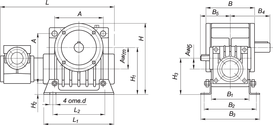 Редуктор Aw т Aw б A B B 1 B 2 B 3 B 4 B 5