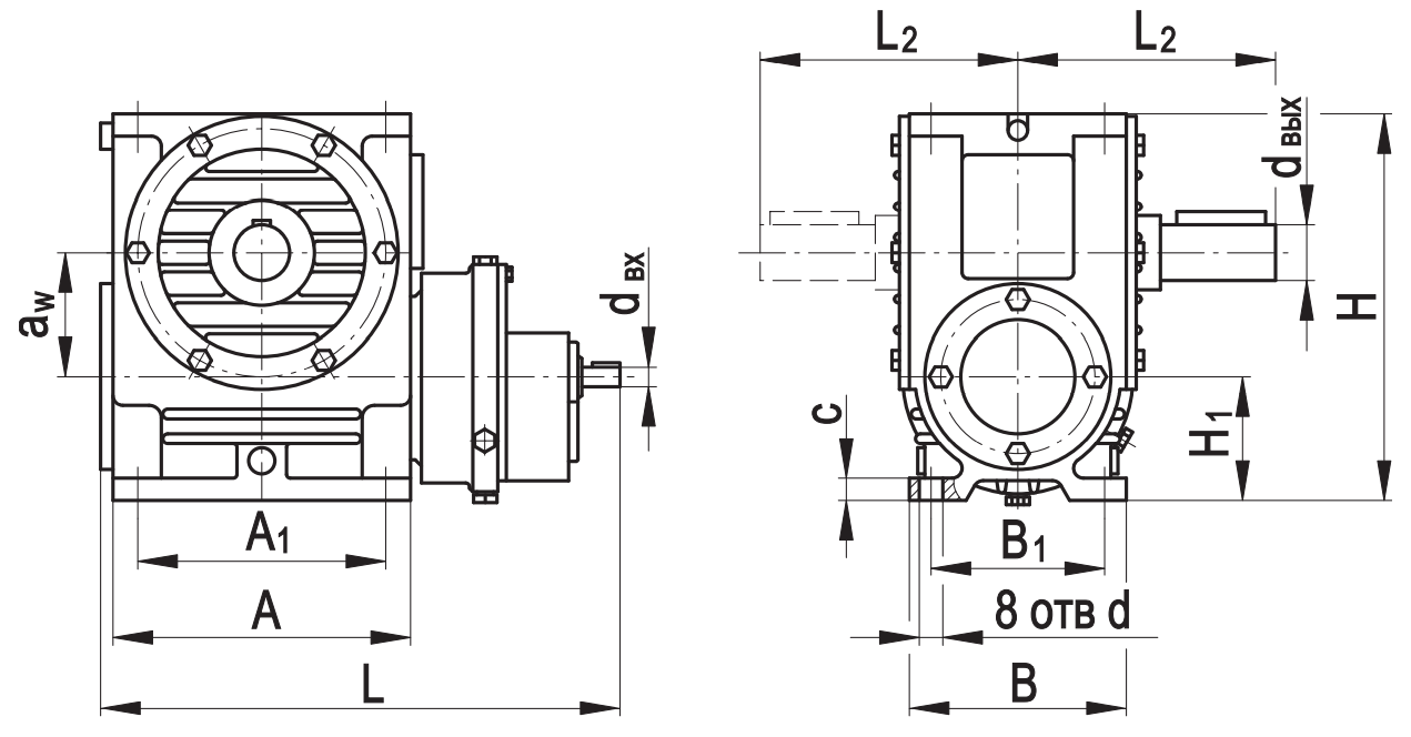 aw А А1 В В2 L L1мах L2 Н Н1 с d dвх dвых