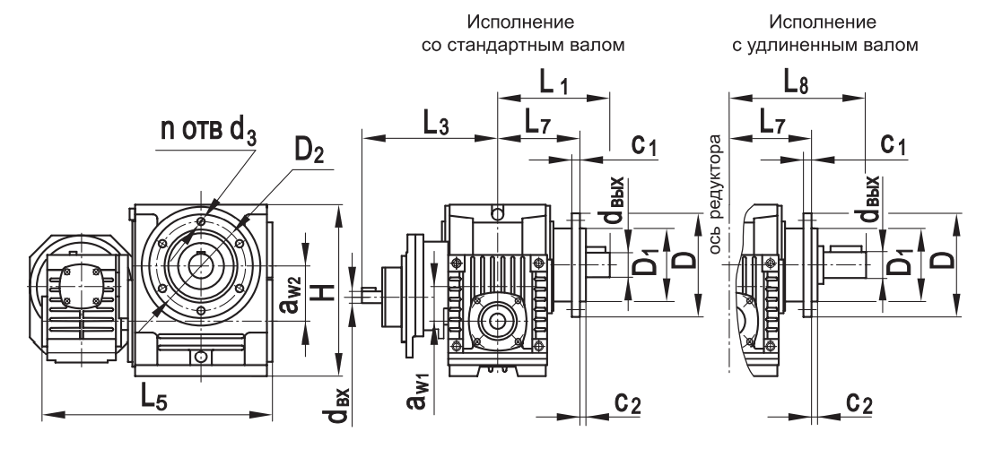 Габаритные размеры редуктора на фланце