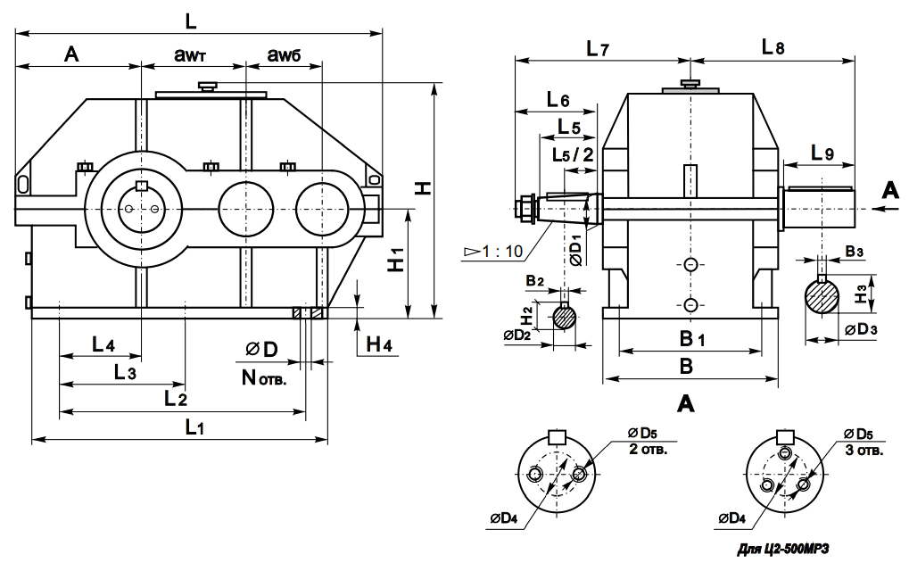 Цилиндрические редукторы Ц2-400МР3, Ц2-400ПМР3, Ц2-500МР3