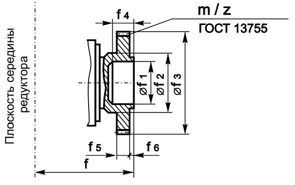 конец вала в виде части зубчатой полумуфты 58000 61000