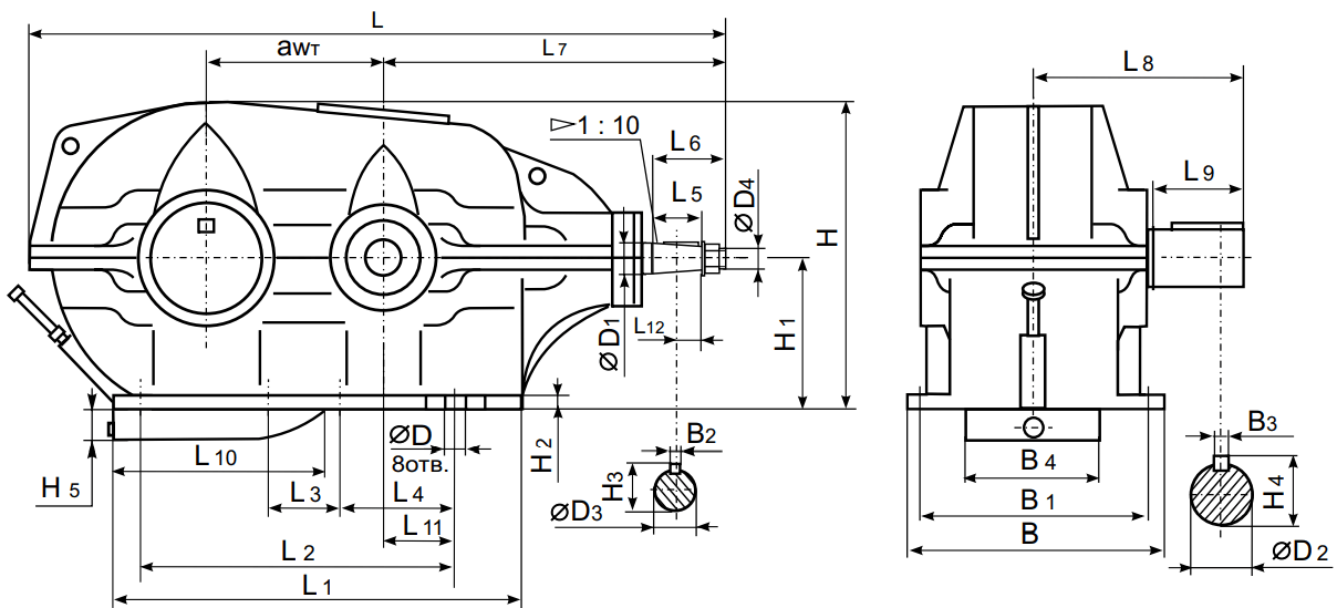 Коническо-цилиндрические редукторы КЦ1-400, КЦ1-500