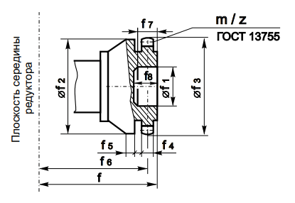 Размеры конца тихоходного вала в виде зубчатой полумуфты